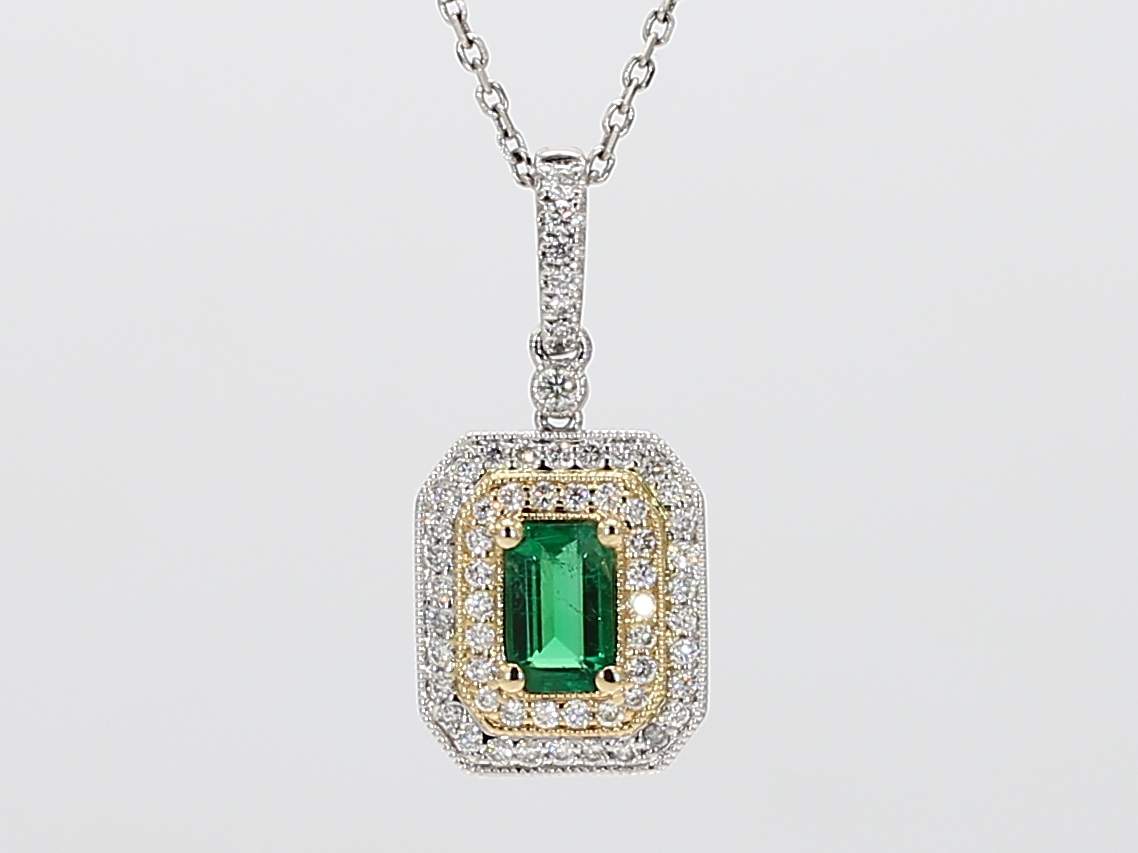 EMERALD CUT EMERALD & ROUND DIAMOND 14KT PENDANT