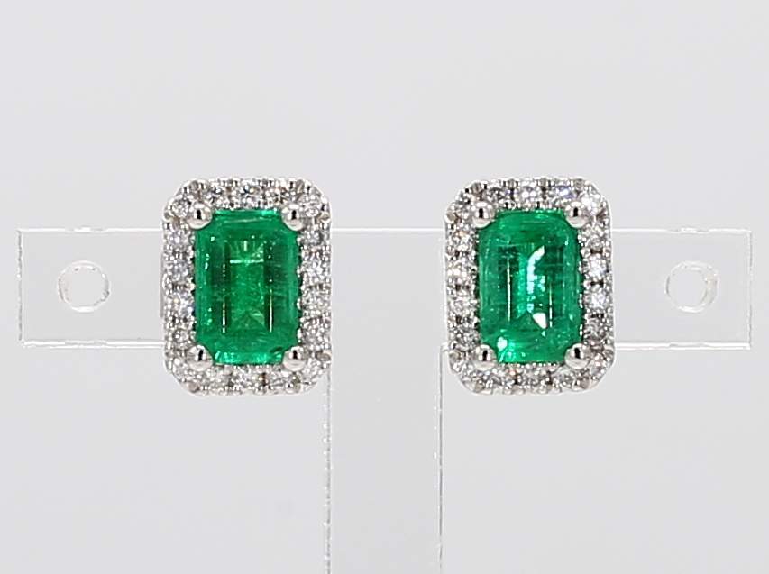 EMERALD CUT EMERALD & ROUND DIAMOND 14KW EARRING