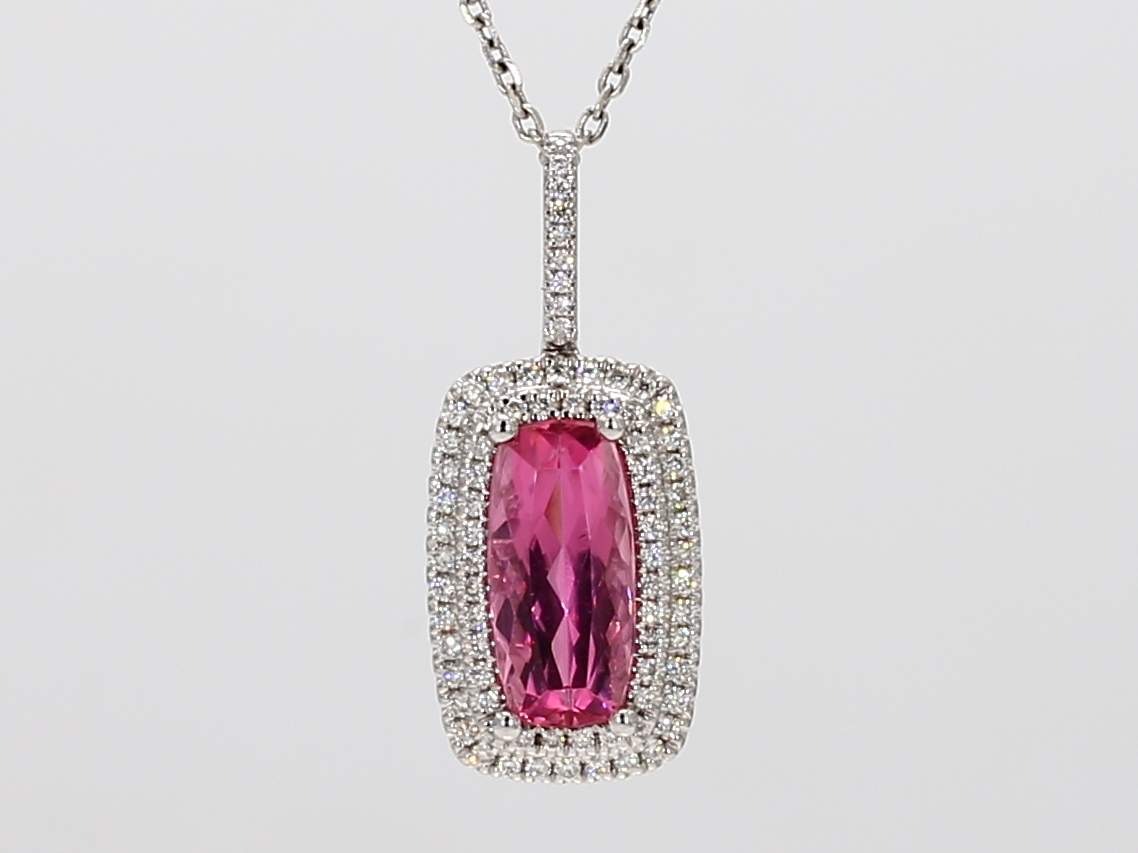 CUSHION PINK TOURMALINE & ROUND DIAMOND 14KW PENDANT