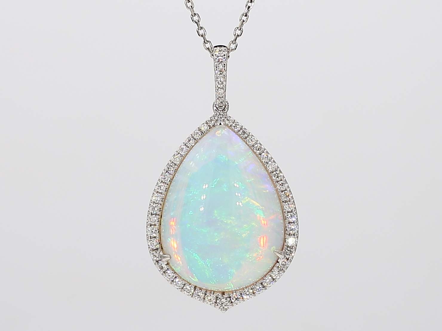 PEAR SHAPE OPAL & ROUND DIAMOND 14KW PENDANT