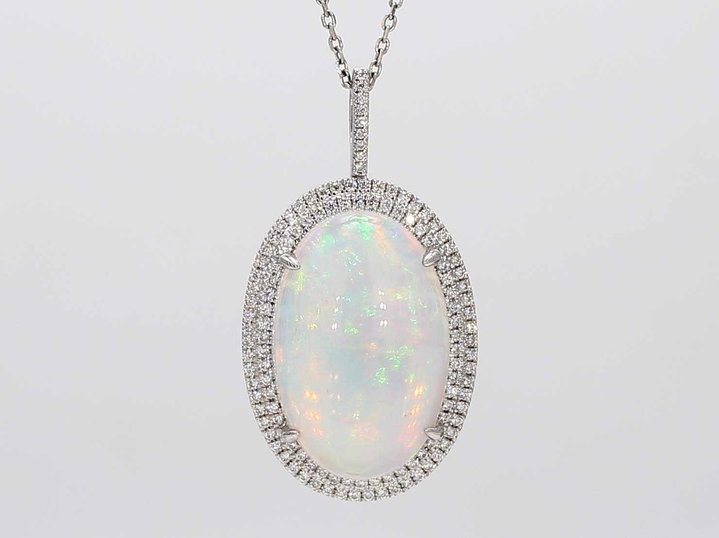 OVAL OPAL & ROUND DIAMOND 14KW PENDANT