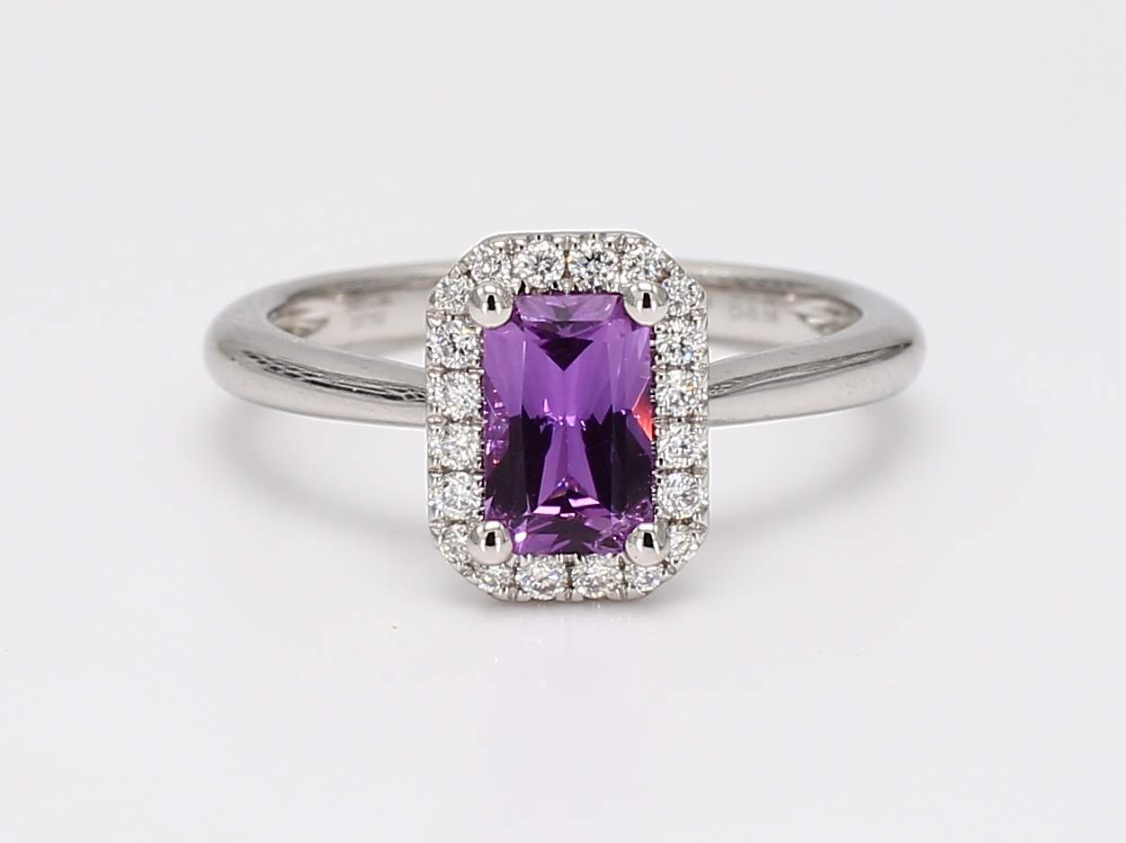 RADIANT UNHEATED PURPLE SAPPHIRE GIA 2235524000 & ROUND DIAMOND 14KW RING