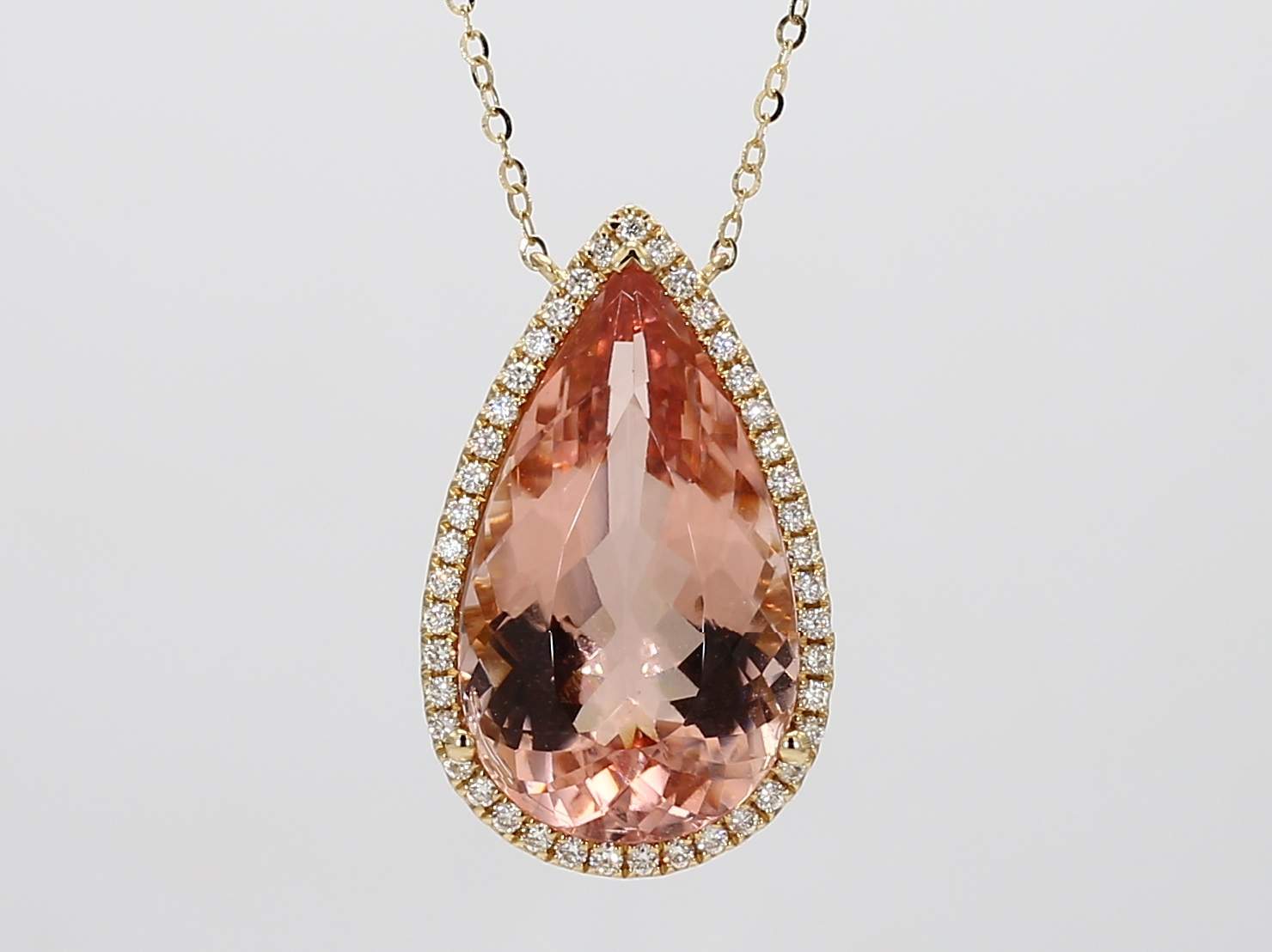 PEAR SHAPE MORGANITE & ROUND DIAMOND 14KY NECKLACE