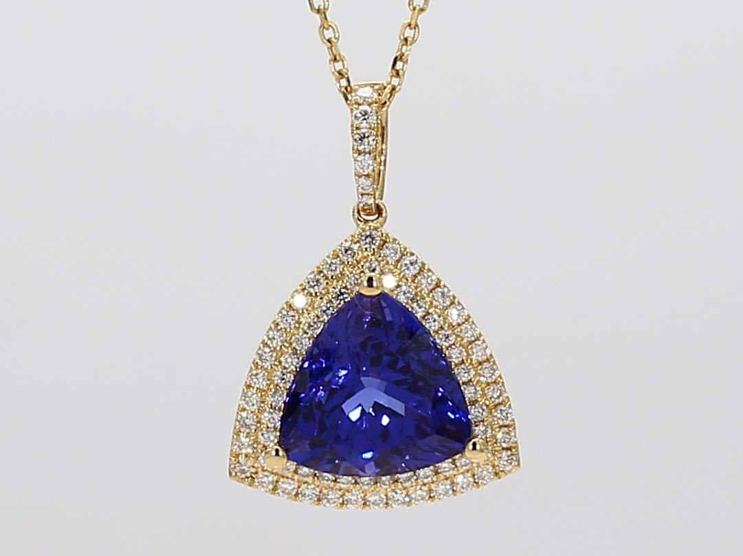TRILLION TANZANITE & ROUND DIAMOND 18KY PENDANT