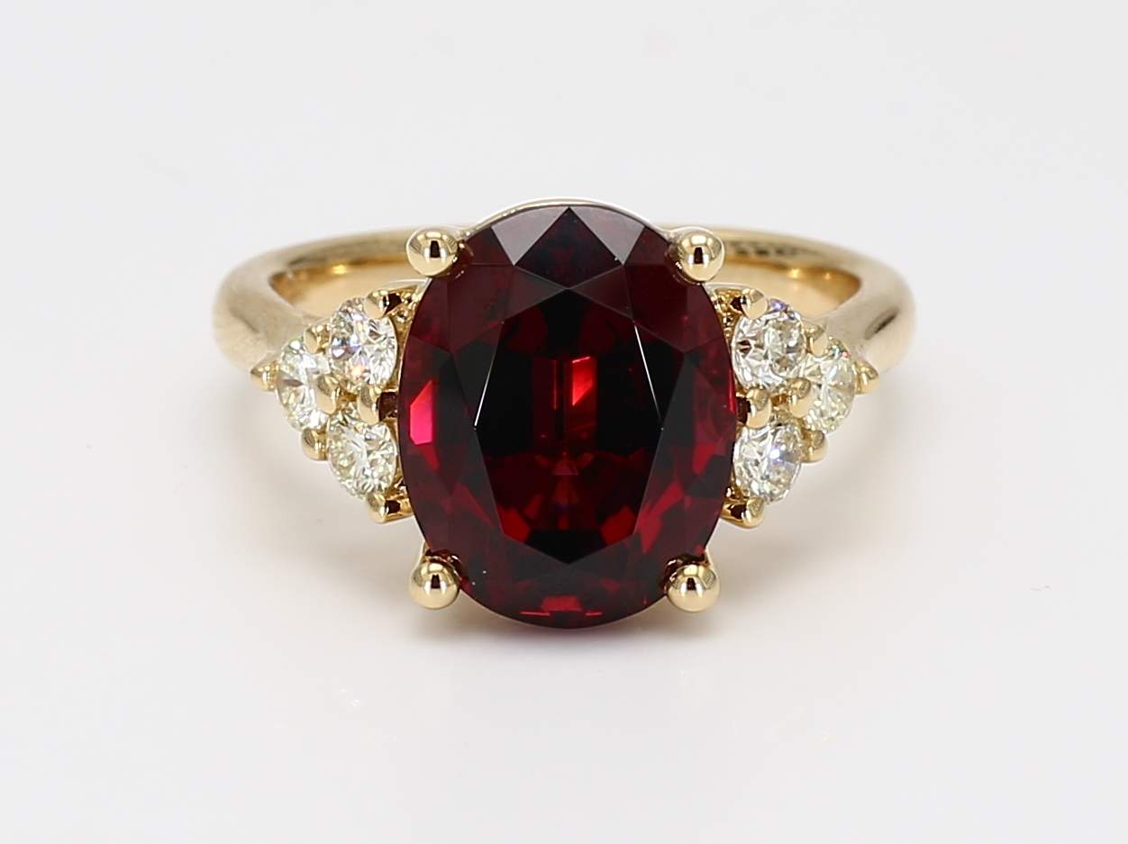 OVAL RHODOLITE GARNET & ROUND DIAMOND 14KY RING