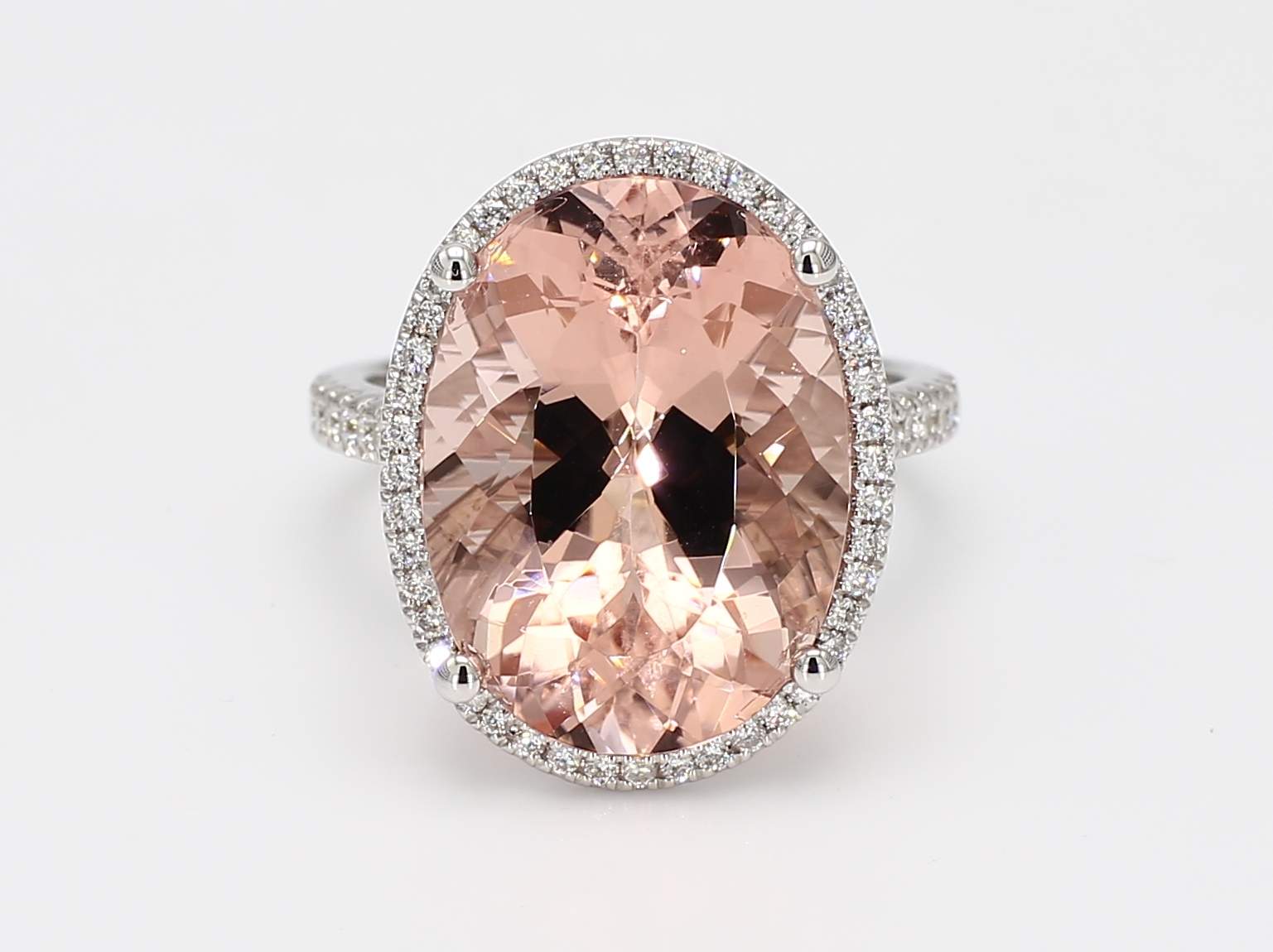 OVAL MORGANITE & ROUND DIAMOND 14KW RING
