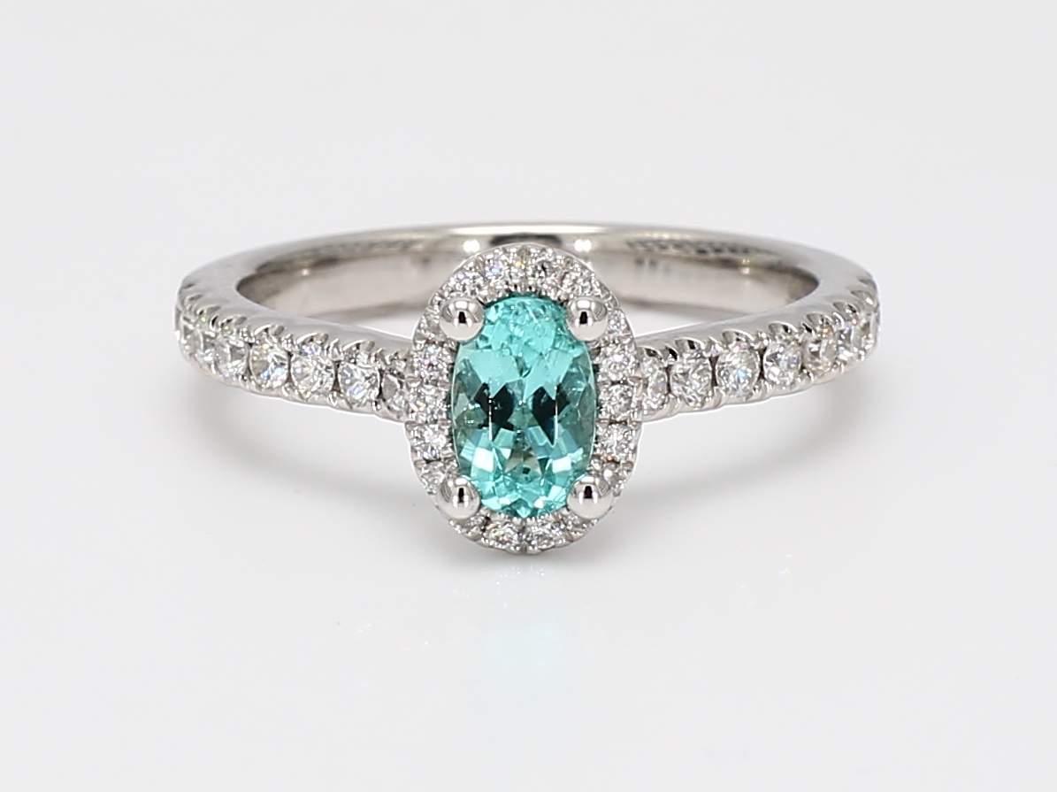 OVAL PARAIBA TOURMALINE GIA 5232462126 & ROUND DIAMOND PLATINUM RING