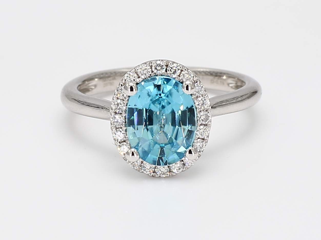 OVAL ZIRCON & ROUND DIAMOND 14KW RING