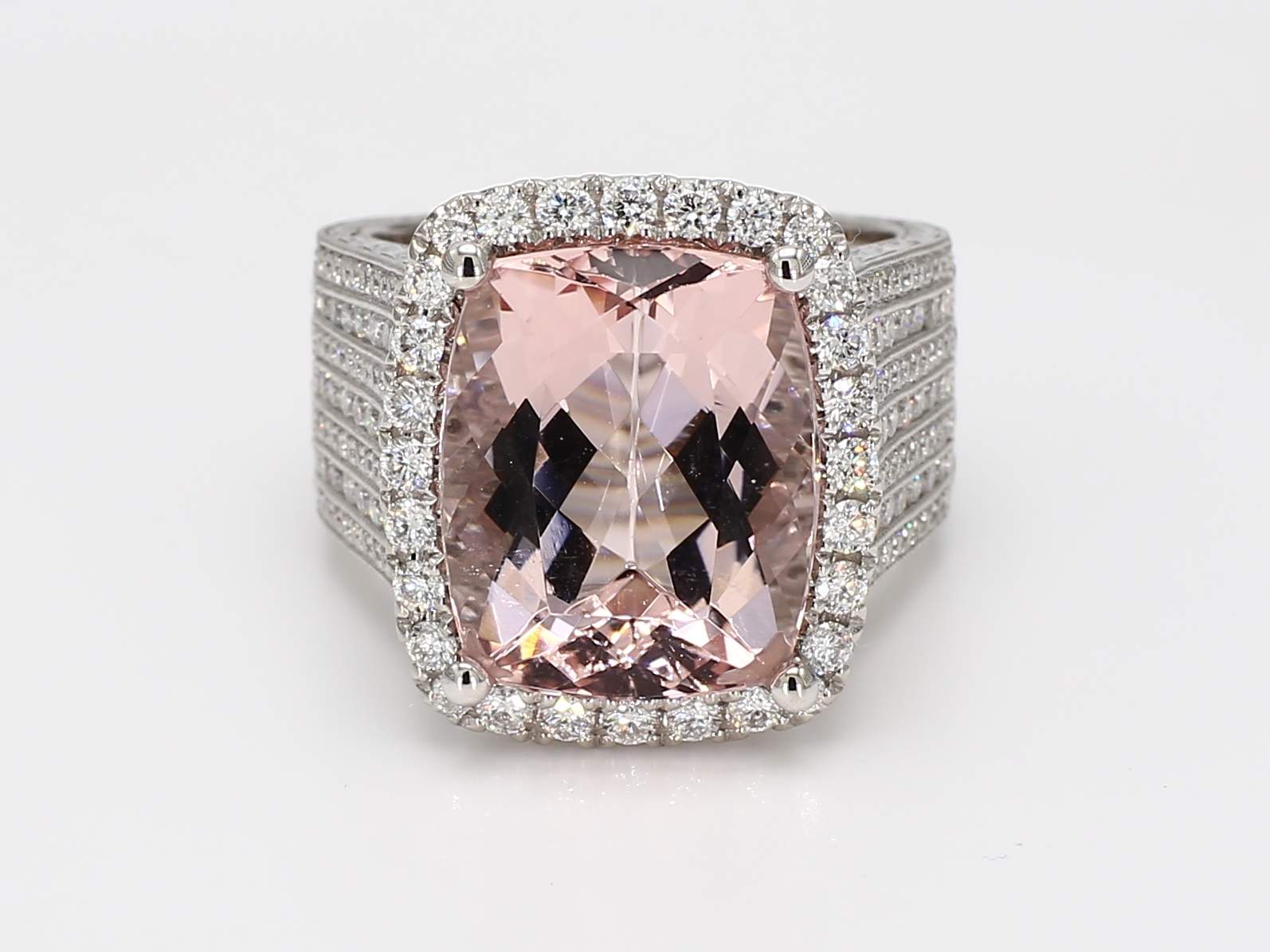 CUSHION MORGANITE & ROUND DIAMOND PLATINUM RING