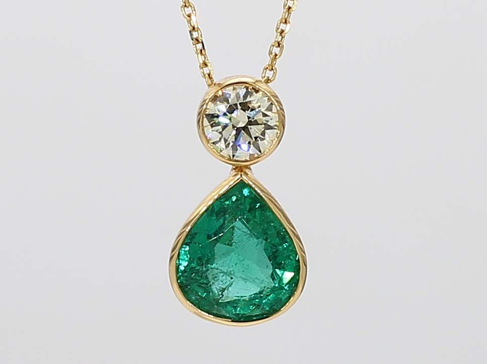 PEAR SHAPE EMERALD & ROUND DIAMOND 18KY PENDANT