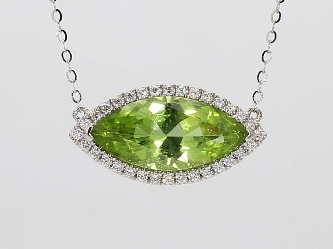 MARQUISE PERIDOT & ROUND DIAMOND 14KW NECKLACE