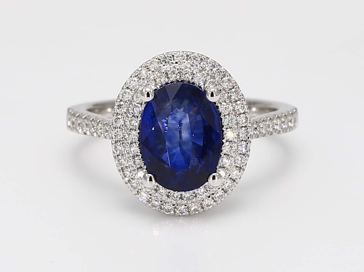 OVAL SAPPHIRE & ROUND DIAMOND 14KW RING