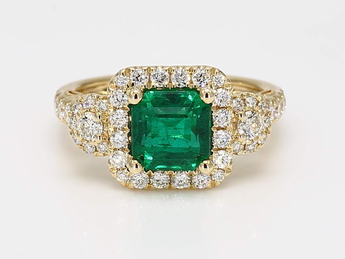 EMERALD CUT EMERALD & ROUND DIAMOND 14KY RING
