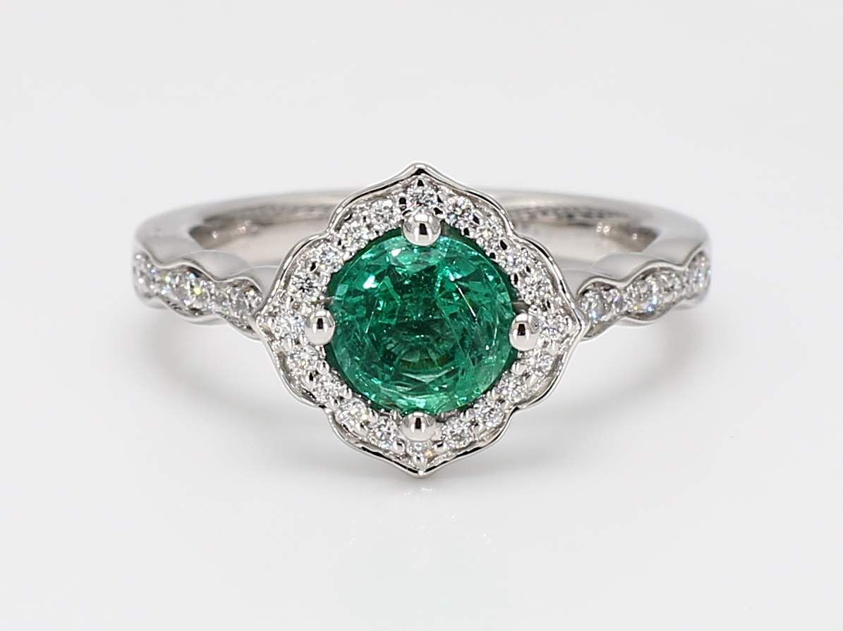 ROUND EMERALD & ROUND DIAMOND PLATINUM RING