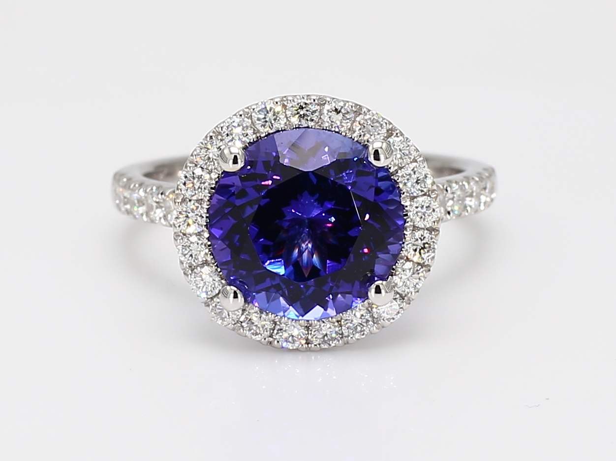 ROUND TANZANITE & ROUND DIAMOND 14KW RING