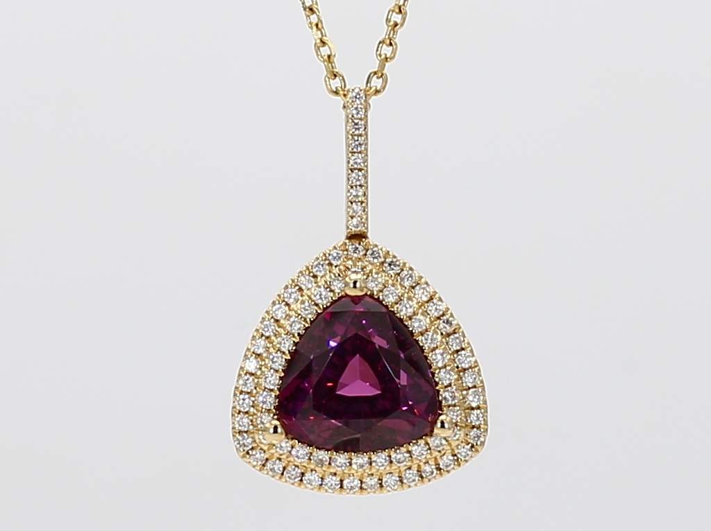 TRILLION RHODOLITE GARNET & ROUND DIAMOND 14KY PENDANT