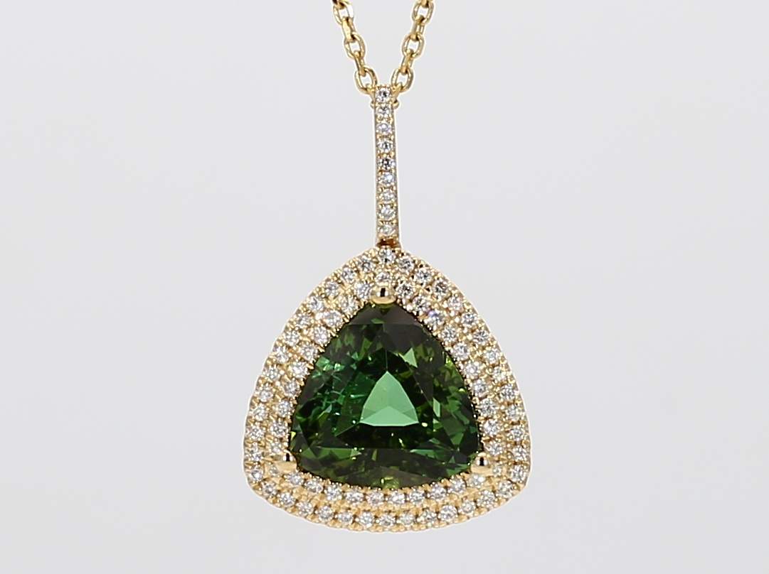 TRILLION GREEN TOURMALINE & ROUND DIAMOND 14KY PENDANT