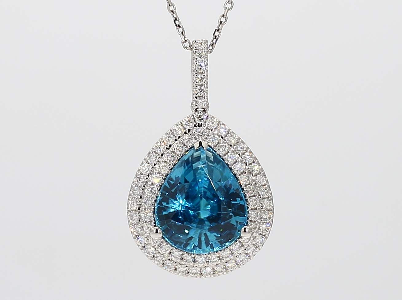 PEAR SHAPE ZIRCON & ROUND DIAMOND 14KW PENDANT