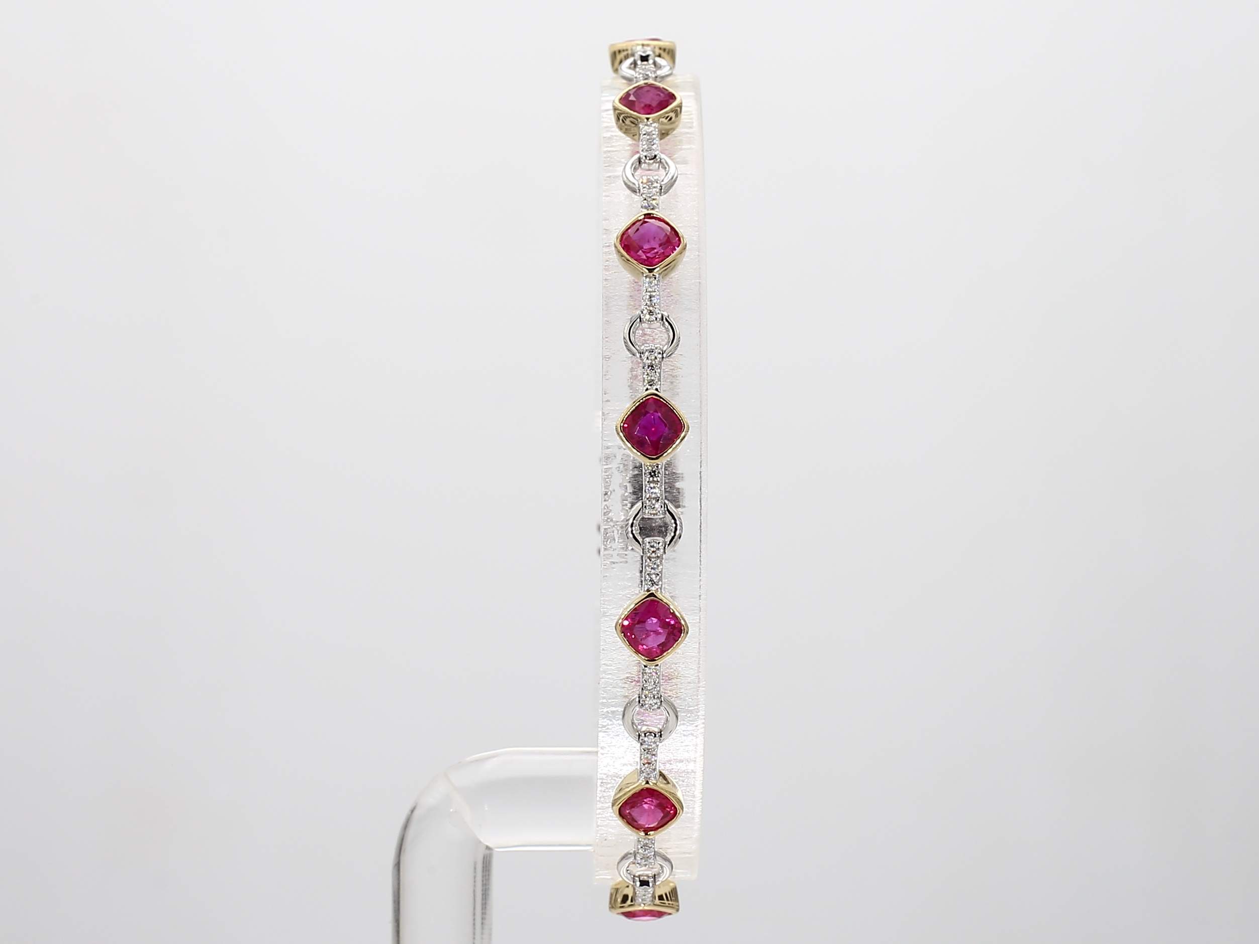 CUSHION RUBY & ROUND DIAMOND 14KT BRACELET