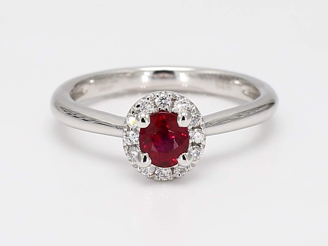 OVAL UNHEATED BURMESE RUBY PIGEON BLOOD GRS2010-101593 & ROUND DIAMOND PLATINUM RING