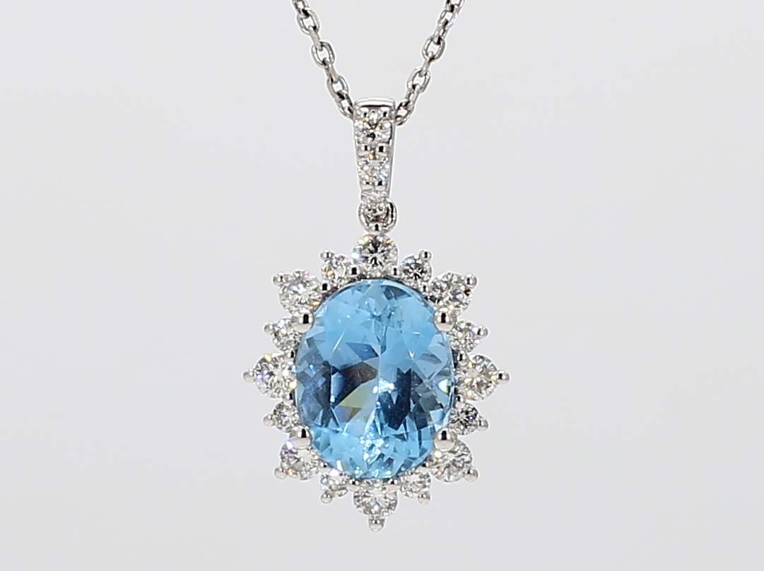 OVAL AQUAMARINE & ROUND DIAMOND 14KW PENDANT
