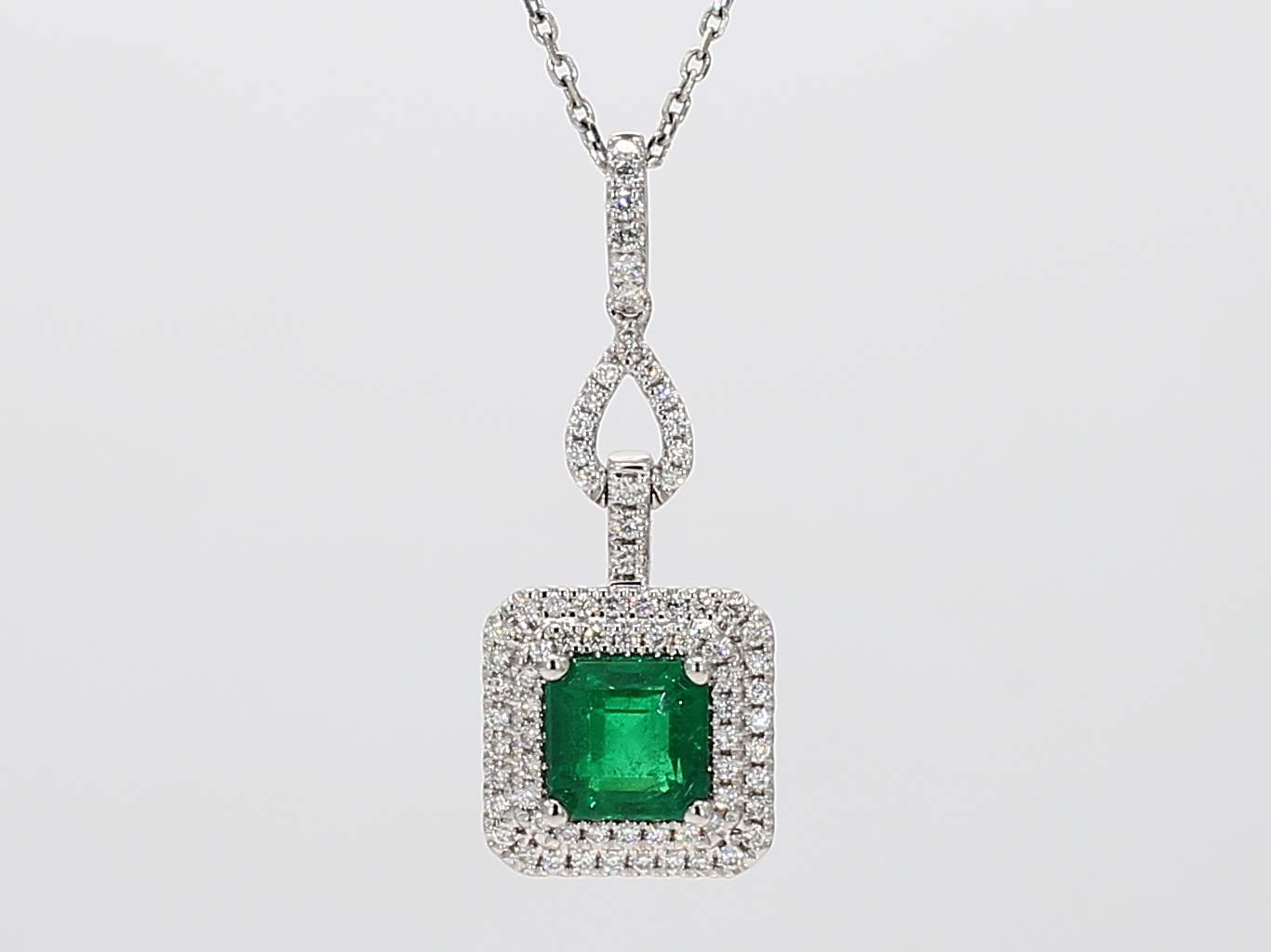 EMERALD CUT EMERALD & ROUND DIAMOND 14W PENDANT
