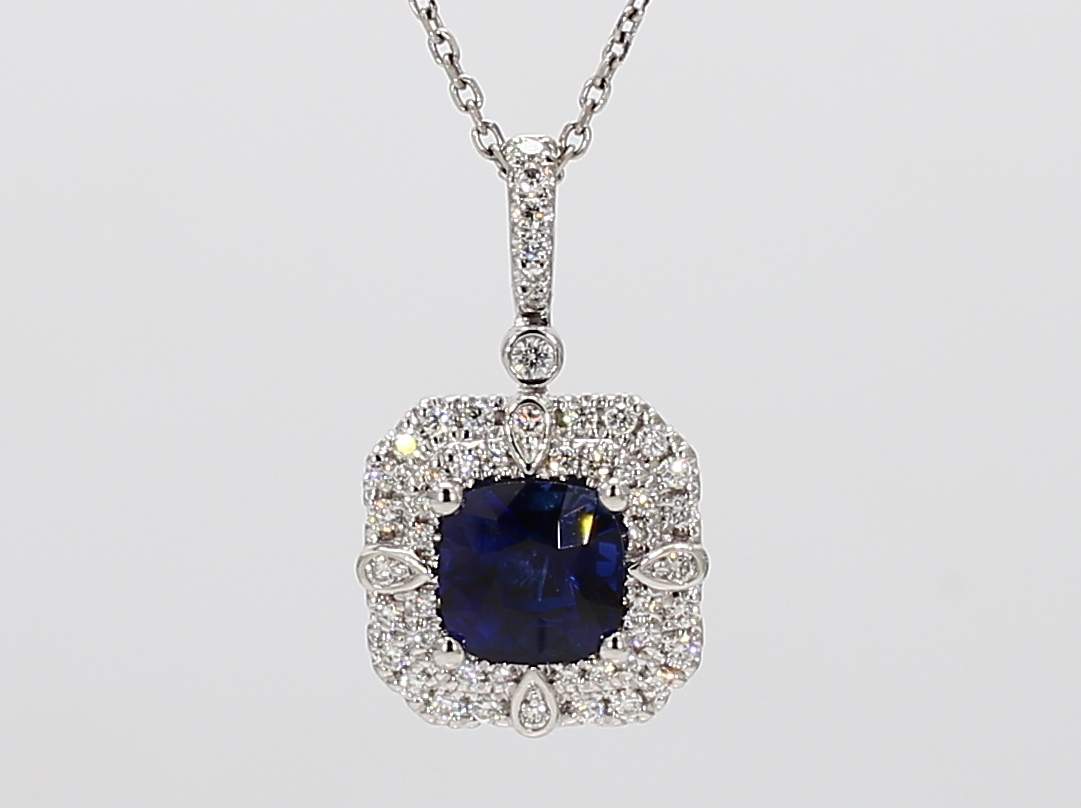 CUSHION SAPPHIRE & ROUND DIAMOND 14KW PENDANT