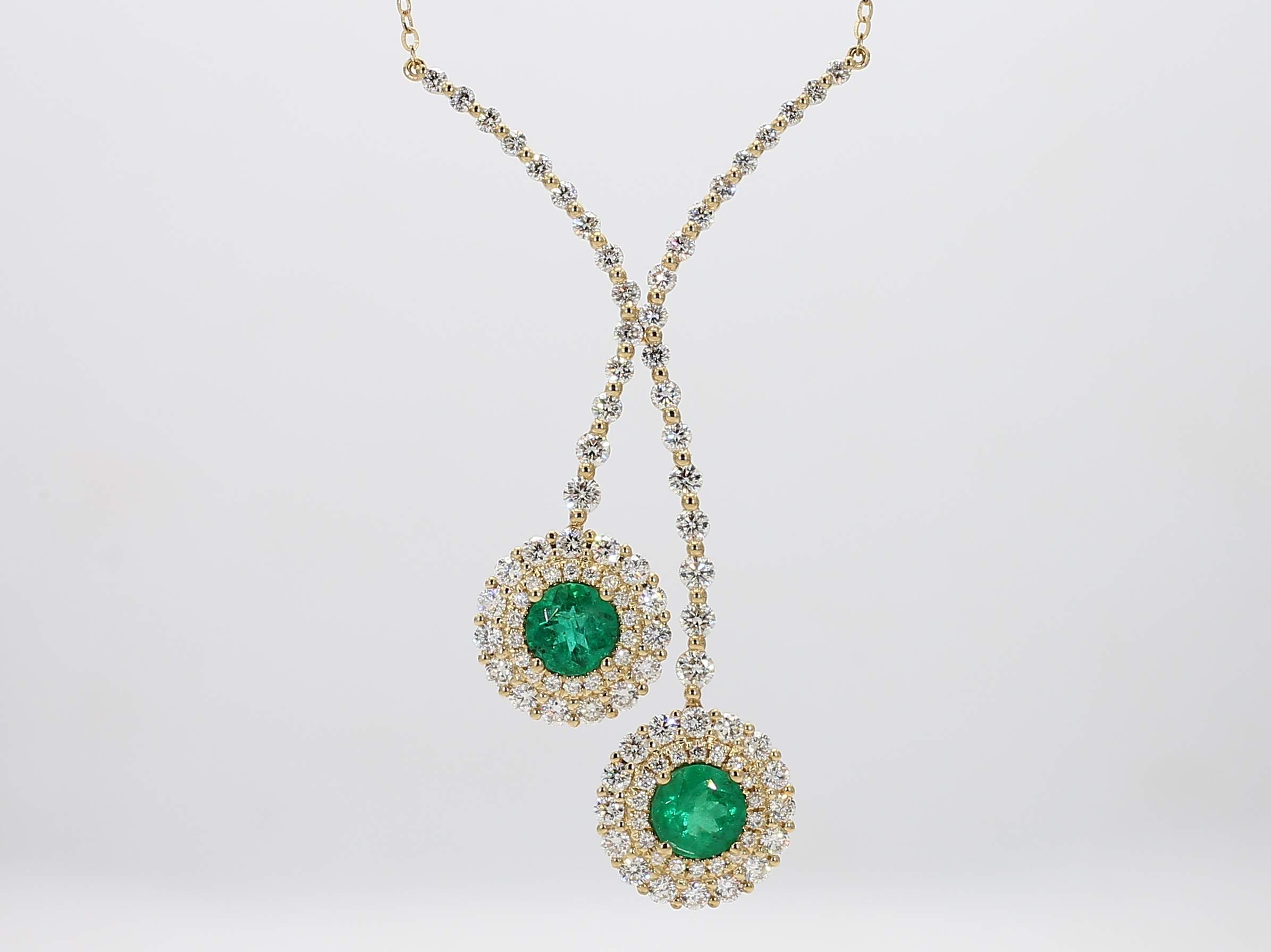 ROUND EMERALD & ROUND DIAMOND 14KY NECKLACE