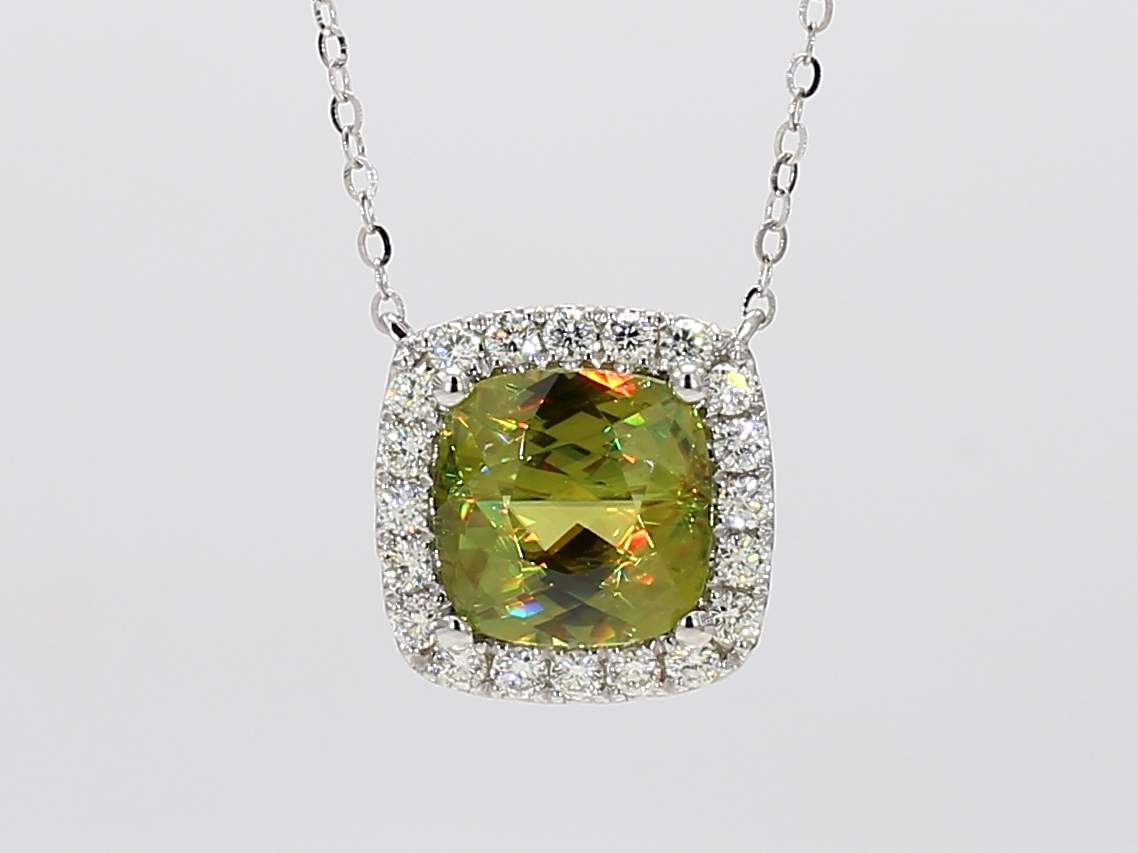 CUSHION SPHENE & ROUND DIAMOND 14KW NECKLACE