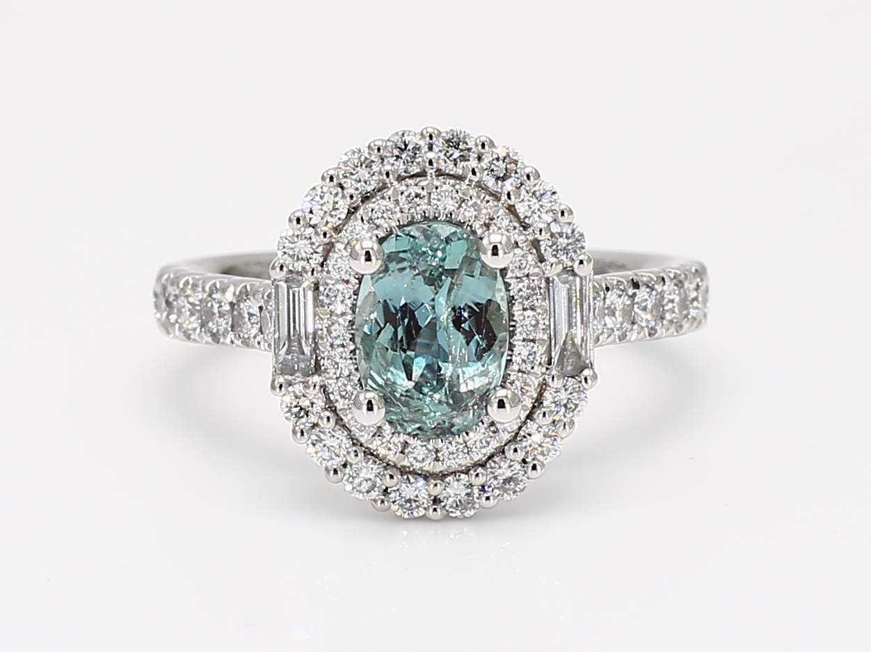 OVAL ALEXANDRITE GIA 2231523960 & ROUND & BAGUETTE DIAMOND PLATINUM RING