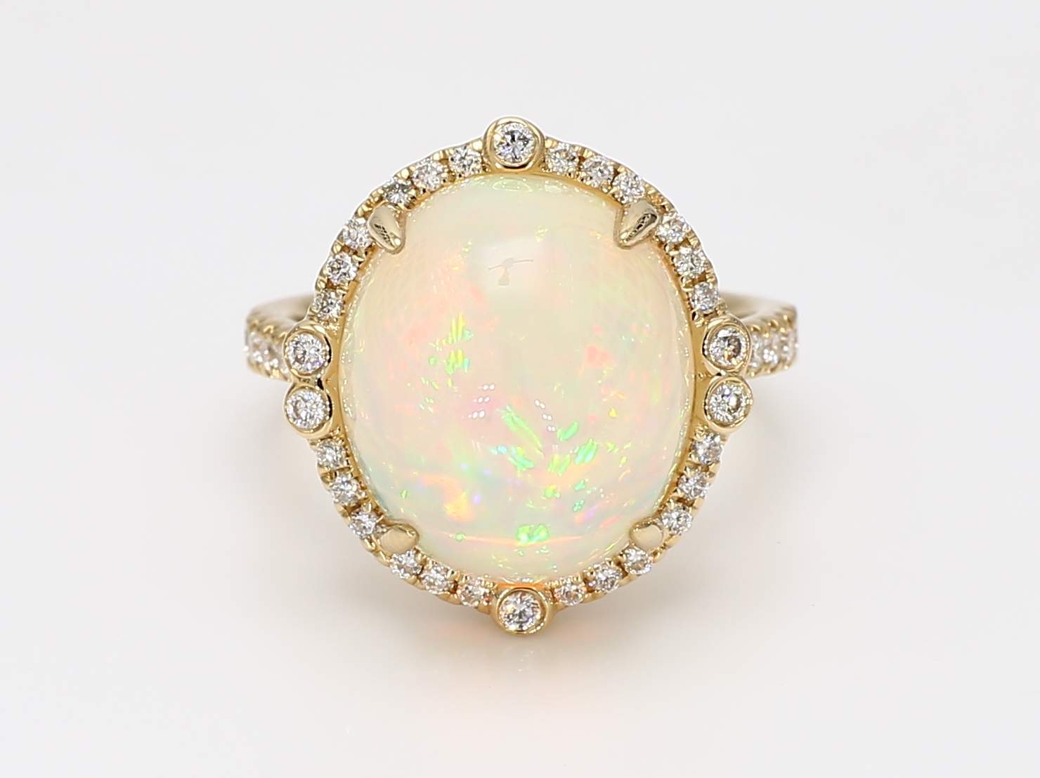 OVAL OPAL & ROUND DIAMOND 14KY RING