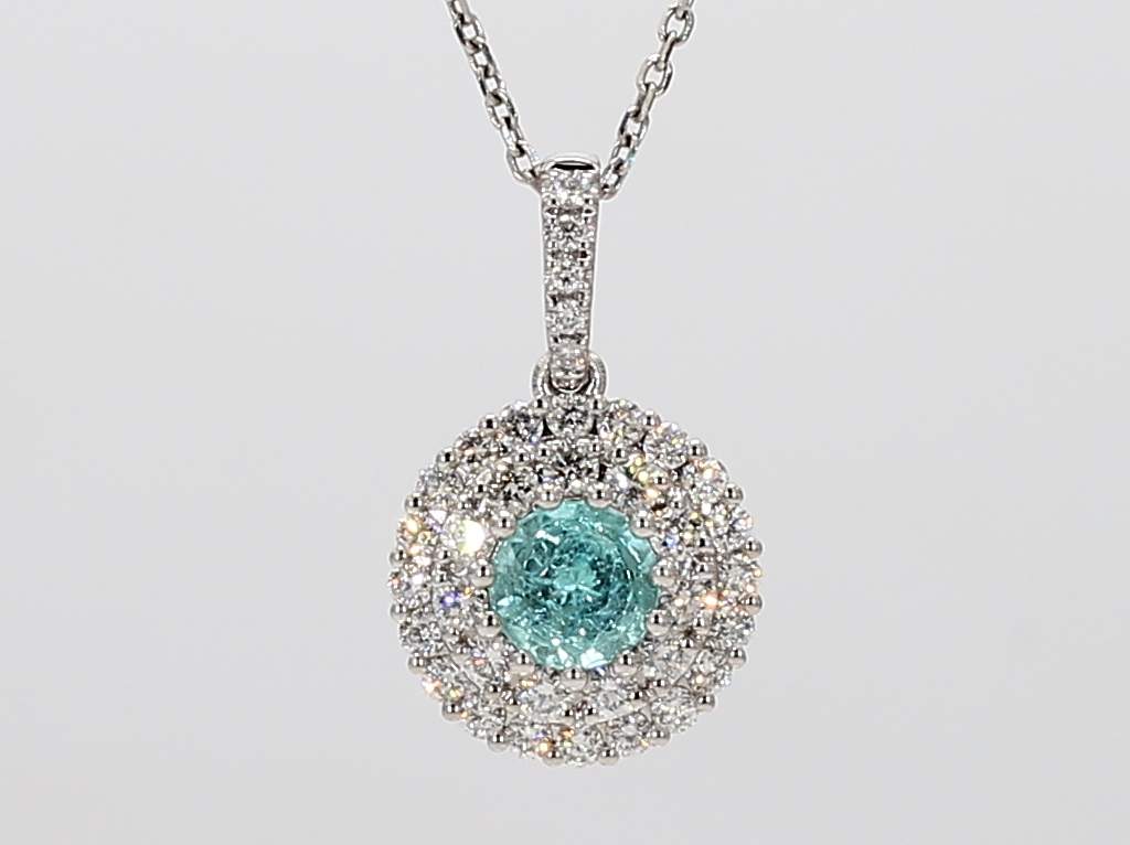 ROUND PARAIBA TOURMALINE GIA 2235555421 & ROUND DIAMOND PLATINUM PENDANT