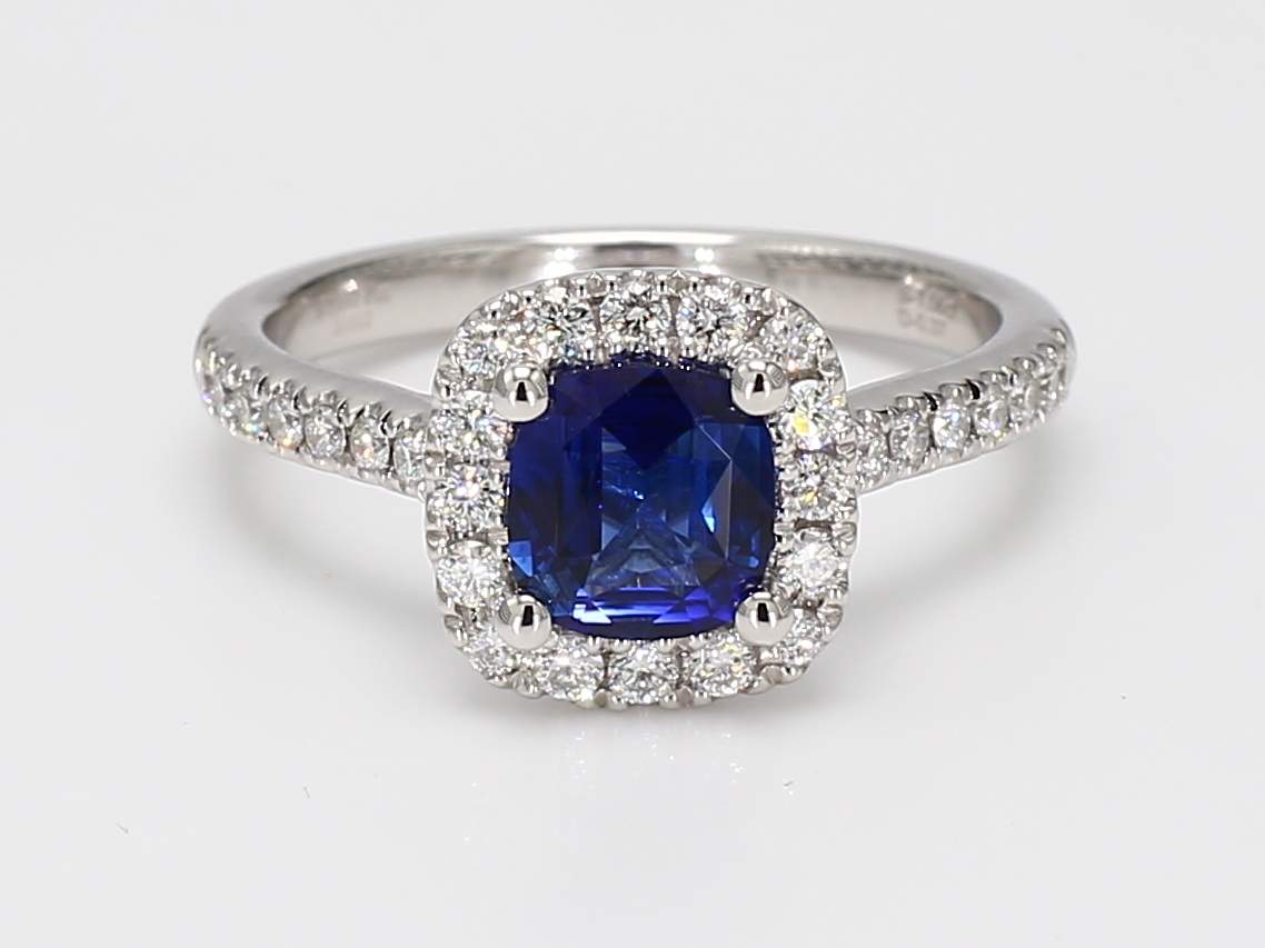 CUSHION SAPPHIRE & ROUND DIAMOND PLATINUM RING