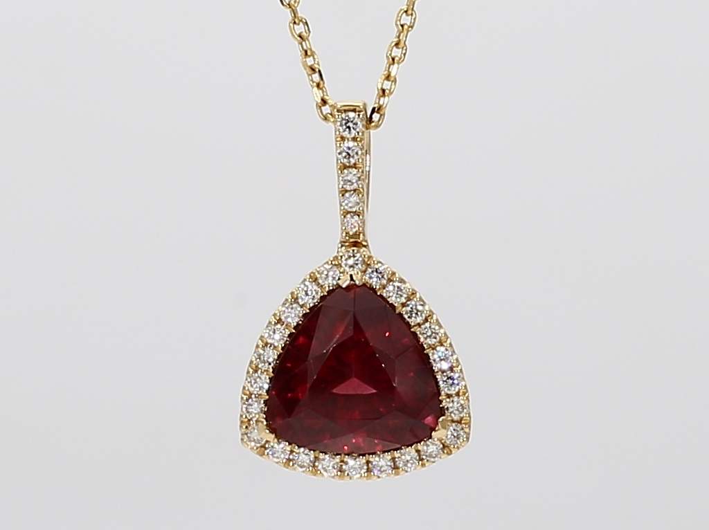 TRILLION MALAYA GARNET & ROUND DIAMOND 14KY PENDANT