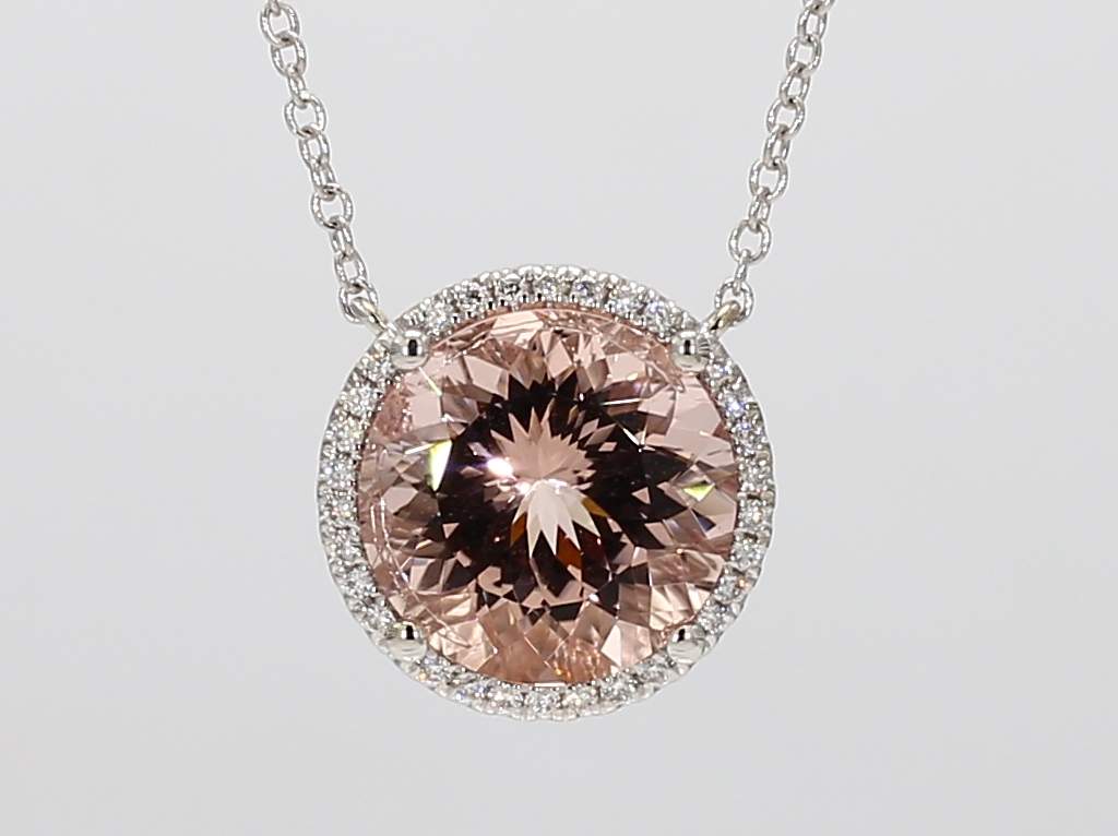 ROUND MORGANITE & ROUND DIAMOND 14KW NECKLACE