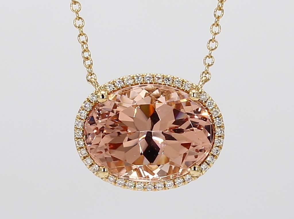 OVAL MORGANITE & ROUND DIAMOND 14KY NECKLACE