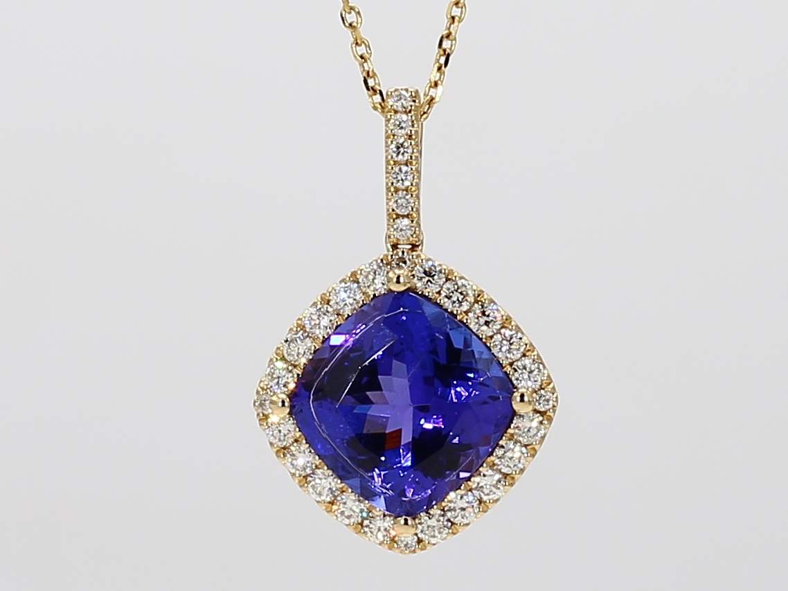 CUSHION TANZANITE & ROUND DIAMOND 14KY PENDANT
