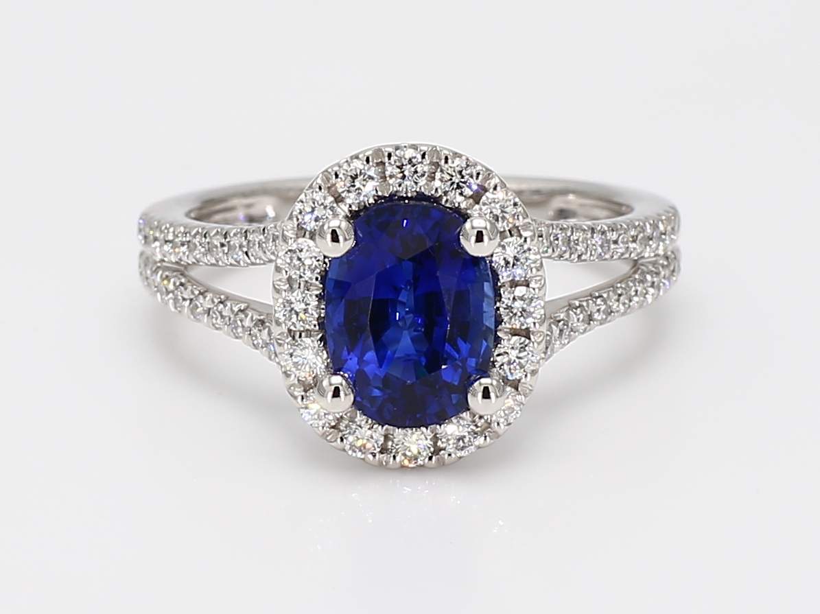 OVAL SAPPHIRE & ROUND DIAMOND PLATINUM RING
