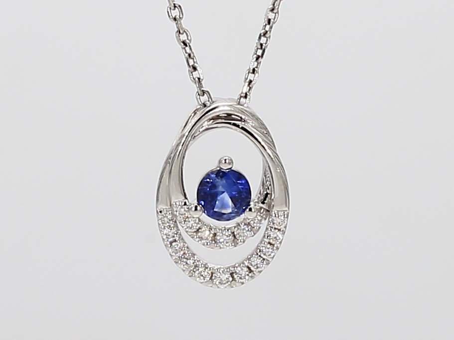 ROUND SAPPHIRE & ROUND DIAMOND 14KW PENDANT