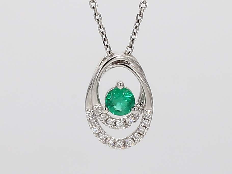 ROUND EMERALD & ROUND DIAMOND 14KW PENDANT