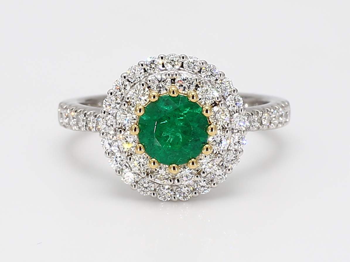 ROUND EMERALD & ROUND DIAMOND PLATINUM & 18KY RING