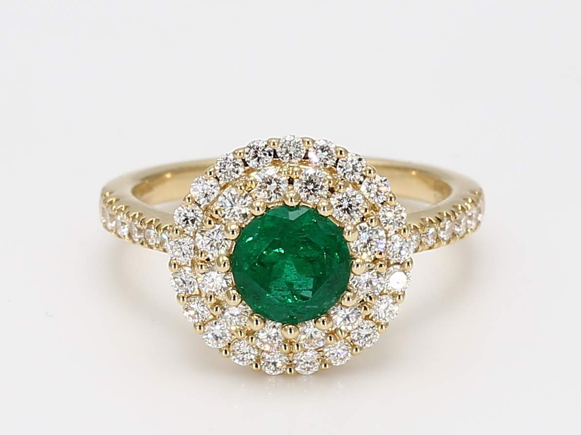 ROUND EMERALD & ROUND DIAMOND 18KY RING