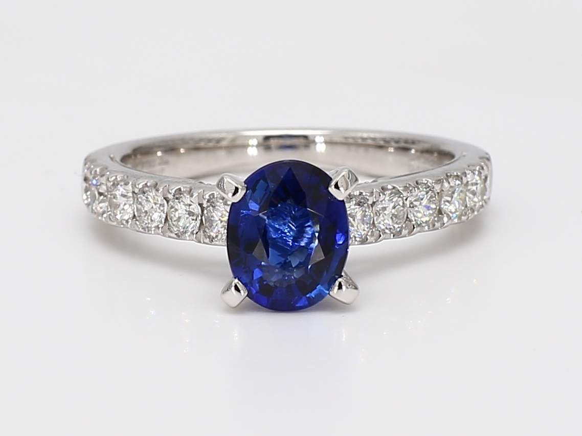 OVAL SAPPHIRE & ROUND DIAMOND PLATINUM RING