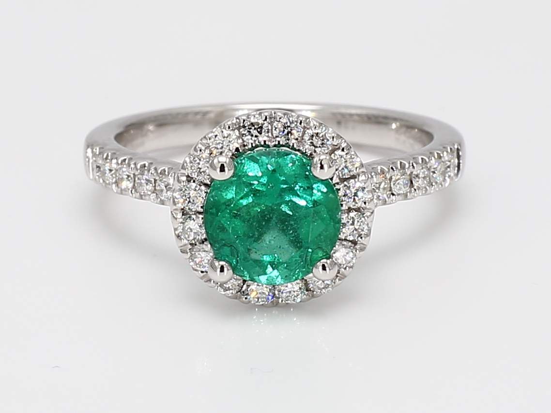 ROUND EMERALD & ROUND DIAMOND PLATINUM RING