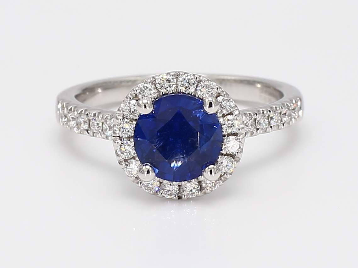 ROUND SAPPHIRE & ROUND DIAMOND PLATINUM RING