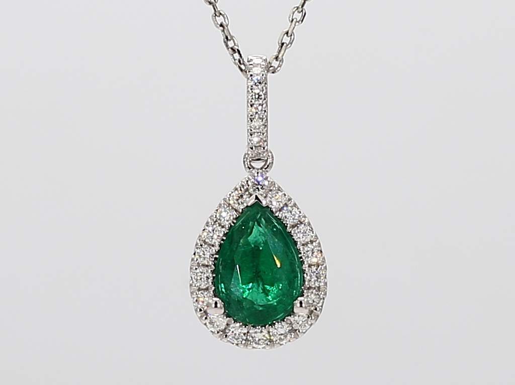 PEAR SHAPE EMERALD & ROUND DIAMOND 14KW PENDANT