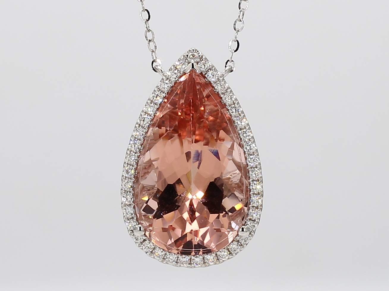 PEAR SHAPE MORGANITE & ROUND DIAMOND 14KW NECKLACE