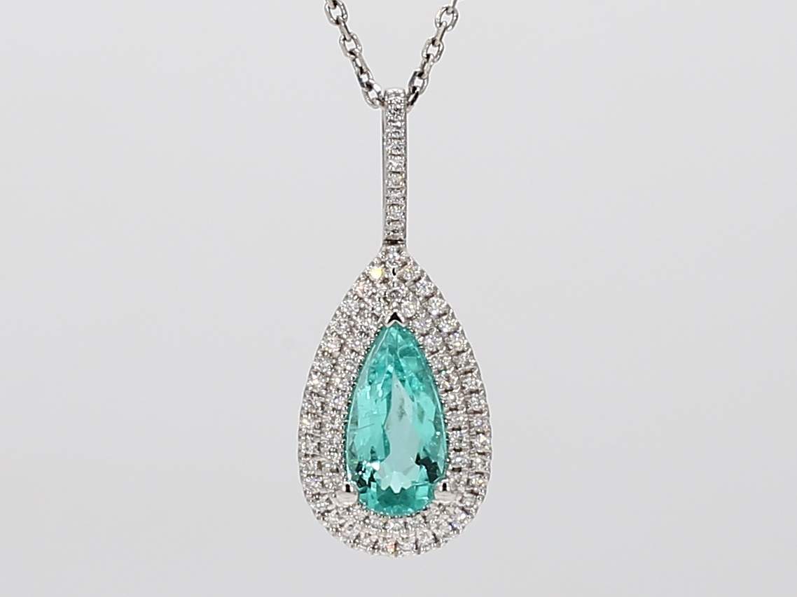 PEAR SHAPE PARAIBA TOURMALINE GIA 1232666417 & ROUND DIAMOND 18KW PENDANT