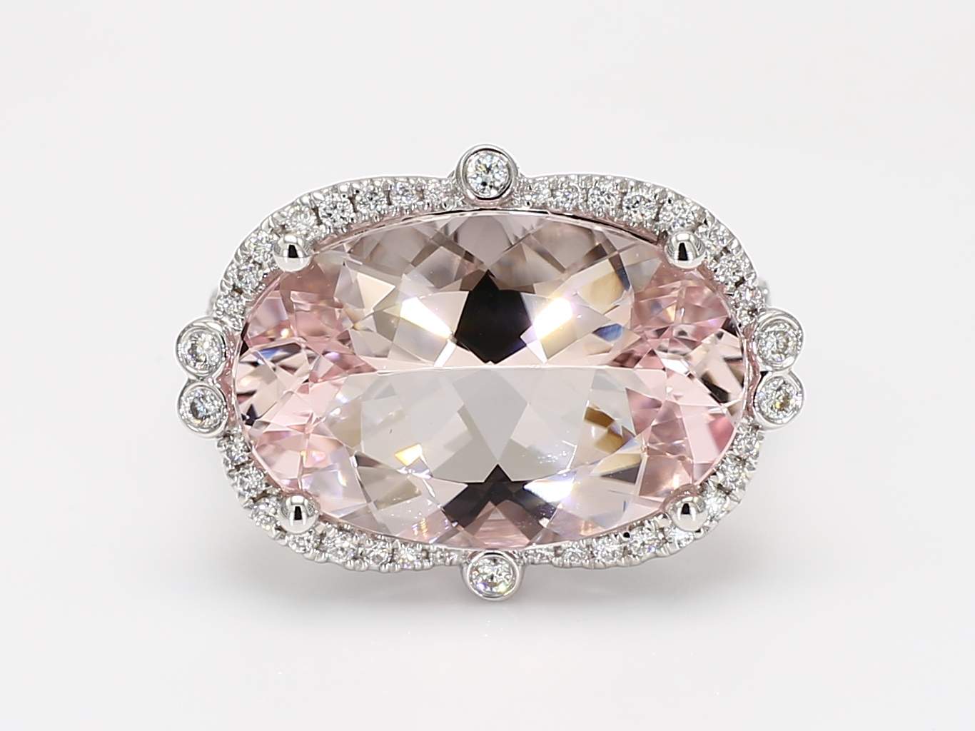 OVAL MORGANITE & ROUND DIAMOND 14KW RING