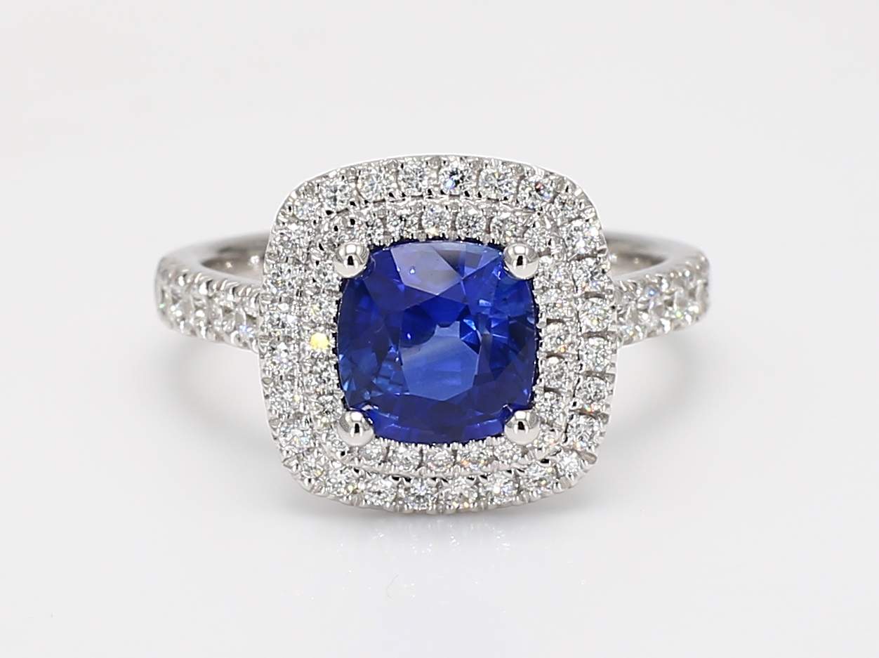 CUSHION SAPPHIRE & ROUND DIAMOND 14KW RING